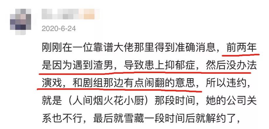 三是说之前遇到渣男得了抑郁症,没办法继续演戏。