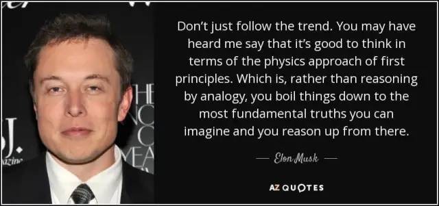 在TED的采访中,他透露自己非常推崇的思维模式是「First principle thinking」,即第一性原理。